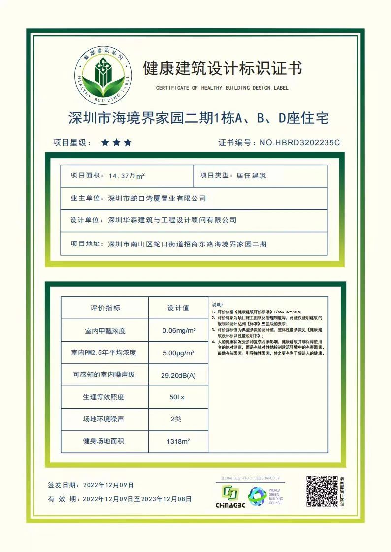 本次論壇,參會人員共同參觀了海境界二期健康建筑項目。項目采用了先進的技術(shù)和策略,包括健康住宅技術(shù)、健康人居設(shè)計、綠色低碳理念運用等。這些舉措不僅提高了企業(yè)的產(chǎn)能和競爭力,同時也順應(yīng)了全球綠色環(huán)保發(fā)展的趨勢,為社會作出了積極的貢獻。中國建研院深圳分公司作為海境界二期項目的技術(shù)顧問團隊,通過提供全專業(yè)全周期的優(yōu)質(zhì)服務(wù),助力項目成功打造成為深圳市首個三星級健康建筑(居住建筑)。