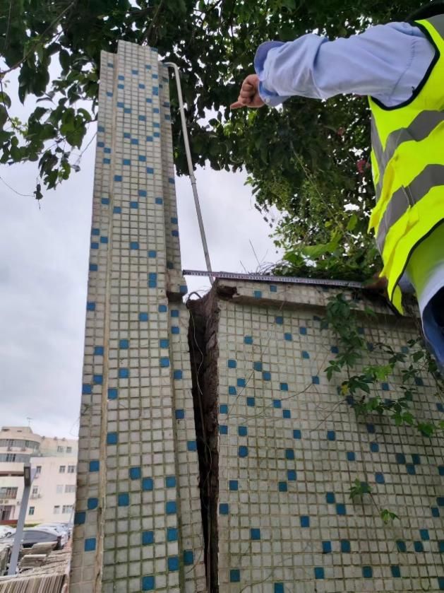 某河道上蓋房屋出現(xiàn)地面下陷,房屋墻體開裂等情況,技術(shù)人員第一時間趕赴居民家中,針對查勘發(fā)現(xiàn)的問題,當即建議主管部門對危險區(qū)域進行清空圍擋,拉設(shè)警戒區(qū)域,樹立警戒標識,避免造成更大險情。同日,某幼兒園內(nèi)的原塊石擋土墻上部的磚砌擋土墻出現(xiàn)變形開裂,技術(shù)人員第一時間與主管部門、幼兒園一起對該擋土墻進行安全排查,針對查勘發(fā)現(xiàn)的問題,當即建議在坡頂設(shè)立警戒區(qū)域并停止使用,并建議坡底應(yīng)采取措施可靠的安全措施,防止對人員造成傷害。技術(shù)人員同步將情況反饋給公司技術(shù)專家組,為相關(guān)部門后續(xù)開展解危整治工作提供科學決策依據(jù)和專業(yè)技術(shù)意見。