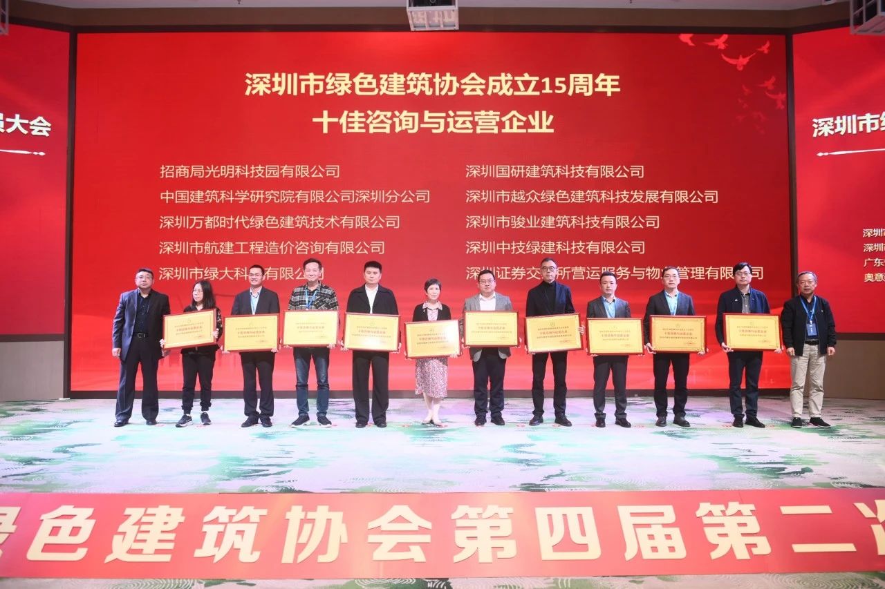 中國建研院深圳分公司作為深圳市綠色建筑協(xié)會副會長單位,獲評“十五周年十佳咨詢與運營企業(yè)”稱號,羅紅獲評“十五周年突出貢獻人物”稱號,施世濤、胡鐵軍獲評“2023年度優(yōu)秀青年工作者”稱號。