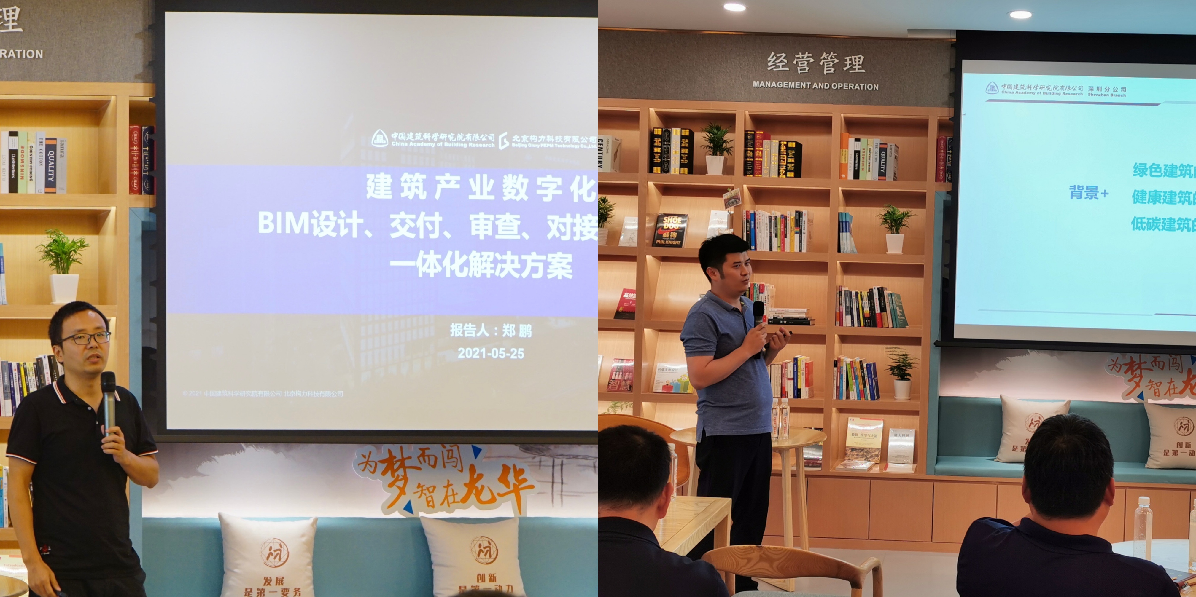 隨后,由中國建研院北京構力科技有限公司深圳分公司總經理鄭鵬和中國建研院深圳分公司綠色建筑與節(jié)能研究所所長施世濤分別為大家作《建筑產業(yè)數字化》和《綠色、健康、低碳建筑發(fā)展》的專題講座。與會人員對講座內容展開了交流研討。