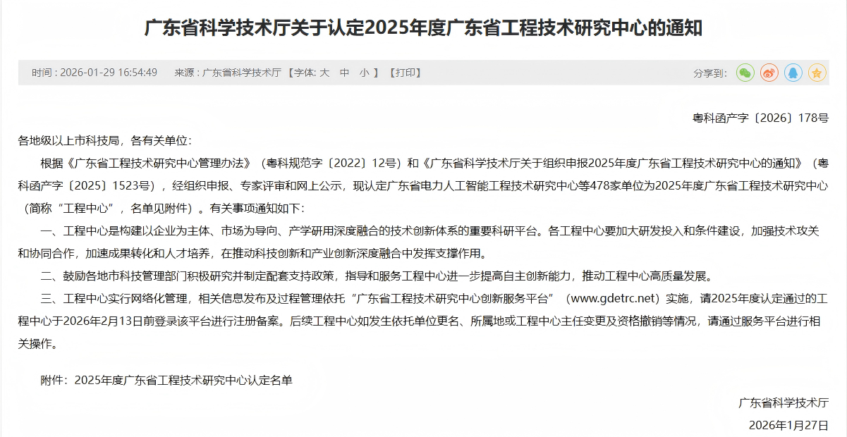 ?近日,廣東省科學(xué)技術(shù)廳正式發(fā)布2025年度廣東省工程技術(shù)研究中心認(rèn)定名單,中國建研院深圳分公司下屬深圳中建院建筑科技有限公司牽頭組建的“廣東省建筑工程質(zhì)量數(shù)字化檢測工程技術(shù)研究中心”成功入選,標(biāo)志著深圳中建院在建筑工程質(zhì)量數(shù)字化檢測領(lǐng)域的技術(shù)實力、創(chuàng)新能力與行業(yè)影響力獲得省級權(quán)威認(rèn)證,彰顯出公司在賦能區(qū)域產(chǎn)業(yè)創(chuàng)新、推動建筑行業(yè)高質(zhì)量發(fā)展中的責(zé)任與擔(dān)當(dāng)。