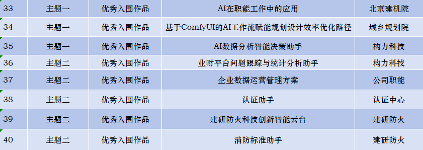 ?首屆“建研青創杯”AI實踐大賽自3月初啟動以來,共500余名職工報名參賽,收集到71組AI實踐案例,其中主題一(挖掘AI應用場景)38組、主題二(打造企業級智能體)33組,案例整體質量高、突顯行業特色、解決實際問題。 經專家評審組打分和大眾評委投票,結合綜合評分、專項評分,按排名篩選出最佳實踐應用、最佳創新創意、最佳視覺呈現、優秀入圍作品等40組獲獎組。 大賽期間,中國建研院團委和數字化管理部還圍繞AI通識教育、AI技術應用、企業級智能體打造等主題累計開展培訓9場,線上線下參與近600人次,活動受到廣大干部職工的廣泛關注和熱情參與。深圳分公司兩個作品“業財一體化系統知識庫”、“基于人工智能大模型的科學技術獎勵輔助申報智能體設計與應用探索”成功入圍,分別獲得最佳視覺呈現獎、優秀入圍作品獎。